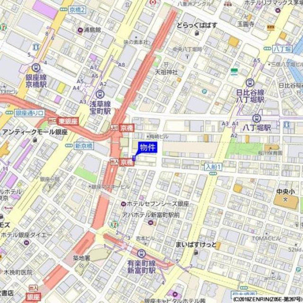 徒歩3分 都営浅草線 『宝町駅』 徒歩4分 日比谷線 『八丁堀駅』 徒歩5分 |