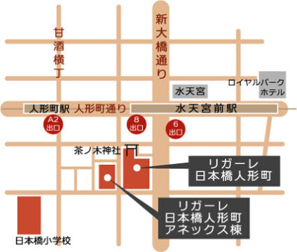 徒歩2分 日比谷線 『人形町駅』 徒歩6分 都営浅草線 『人形町駅』 徒歩4分 |