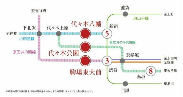徒歩12分 千代田線 『代々木公園駅』 徒歩12分 京王井の頭線 『駒場東大前駅』 徒歩13分 |