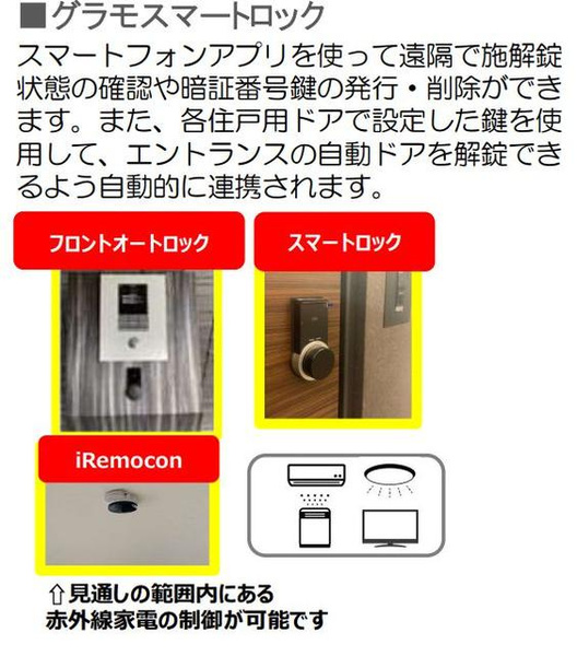 | 設備 | 防犯カメラ / オートロック / 保証人不要 / 室内洗濯機置場 / バルコニー / 都市ガス / IHクッキングヒーター / コンロ2口以上 / 食器洗い乾燥機 / コンロ3口 / バス・トイレ別 / 追焚機能浴室 / 浴室乾燥機 / 温水洗浄便座 / 洗面台 / シャワー / エアコン / ウォークインクロゼット / インターネット対応 / インターネット無料 / TVモニタ付インターホン / 宅配ボックス / 24時間緊急通報システム / 複層ガラス | ||