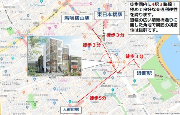 徒歩3分 都営新宿線 『馬喰横山駅』 徒歩3分 日比谷線 『人形町駅』 徒歩5分 |