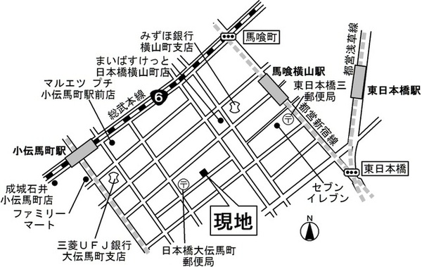徒歩4分 都営浅草線 『東日本橋駅』 徒歩4分 日比谷線 『小伝馬町駅』 徒歩4分 |