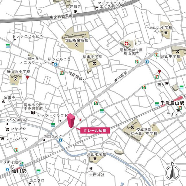 徒歩10分 京王線 『千歳烏山駅』 徒歩14分 |