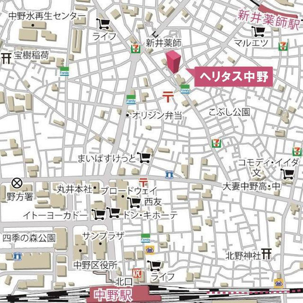 ヘリタス中野の周辺MAP