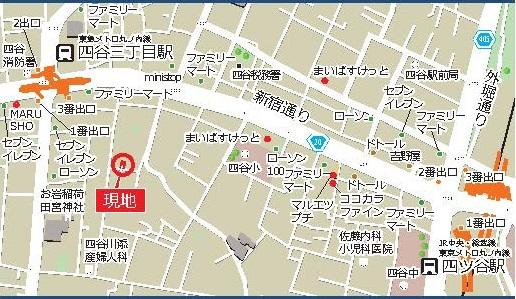 最寄駅は、丸ノ内線『四谷三丁目駅』、中央線『四ツ谷駅』です。