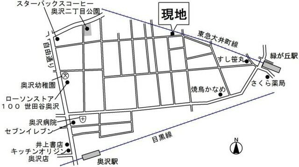 奥沢戸建貸家の周辺MAP