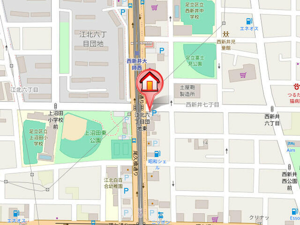 徒歩2分 東武大師線 『大師前駅』 徒歩16分 日暮里舎人ライナー 『江北駅』 徒歩10分 |