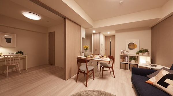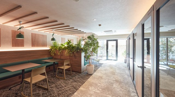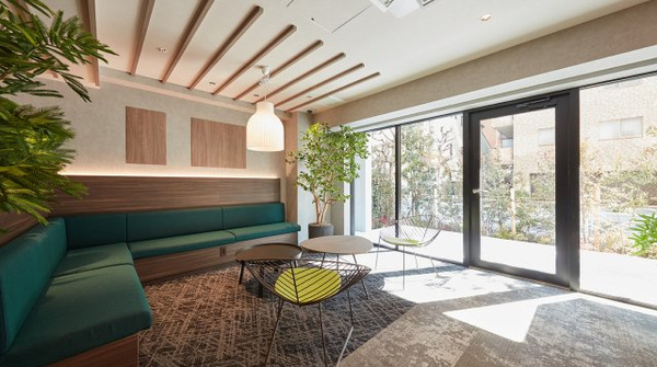 このマンションの最大の魅力は、1階に大きな「ワークラウンジ」があり、ソファーやテーブルが並ぶラウンジ、緑を眺めながらのテラス、4室ある個室ブースなどバラエティに富んだスペースを選べて、更にフリーWi-Fiやコンセント付ソファやデスクを完備していますので、テレワークやWEB会議を行う方には申し分ない共用設備としてお使いいただけます。