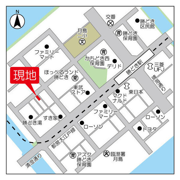 徒歩4分 都営大江戸線 『月島駅』 徒歩12分 都営大江戸線 『築地市場駅』 徒歩16分 日比谷線 『築地駅』 徒歩18分 日比谷線 『東銀座駅』 徒歩22分 |
