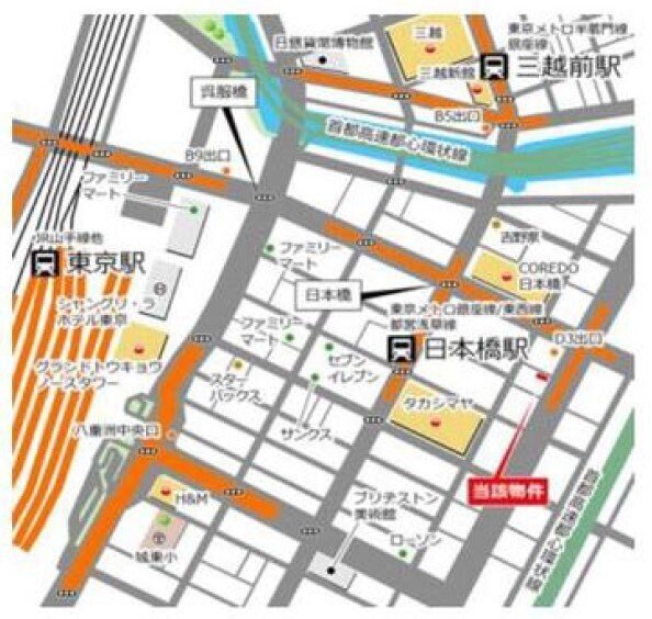 徒歩1分 日比谷線 『茅場町駅』 徒歩4分 半蔵門線 『三越前駅』 徒歩6分 山手線 『東京駅』 徒歩10分 |