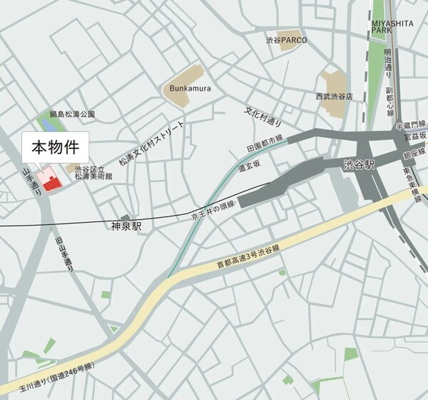 徒歩4分 京王井の頭線 『駒場東大前駅』 徒歩8分 東急田園都市線 『渋谷駅』 徒歩10分 山手線 『渋谷駅』 徒歩12分 東急田園都市線 『池尻大橋駅』 徒歩16分 |