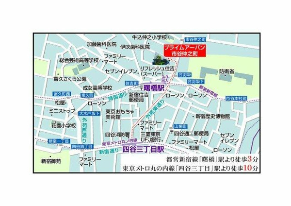 徒歩3分 丸ノ内線 『四谷三丁目駅』 徒歩10分 都営大江戸線 『牛込柳町駅』 徒歩10分 |