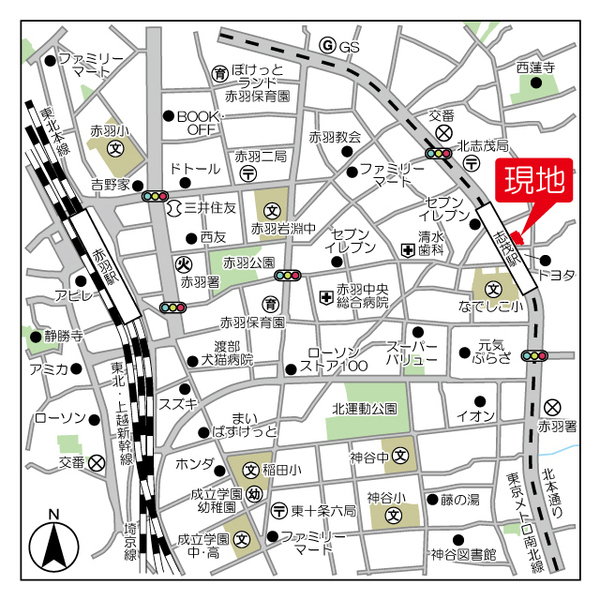 徒歩1分 埼京線 『赤羽駅』 徒歩15分 南北線 『赤羽岩淵駅』 徒歩16分 |