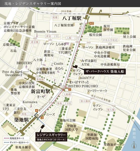 徒歩3分 日比谷線 『八丁堀駅』 徒歩4分 日比谷線 『築地駅』 徒歩5分 |
