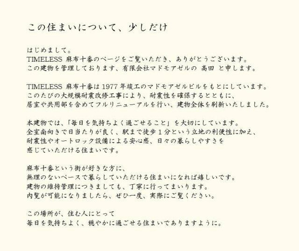 TIMELESS麻布十番の物件概要