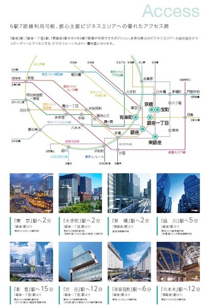 徒歩2分 都営浅草線 『宝町駅』 徒歩3分 都営浅草線 『東銀座駅』 徒歩4分 銀座線 『京橋駅』 徒歩6分 銀座線 『銀座駅』 徒歩7分 |