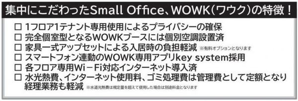 | 設備 | オートロック / 飲食店可 / ワンフロア / スクール向け / クリニック向け / スケルトン渡し / バルコニー / エアコン / インターネット無料 / 宅配ボックス | ||