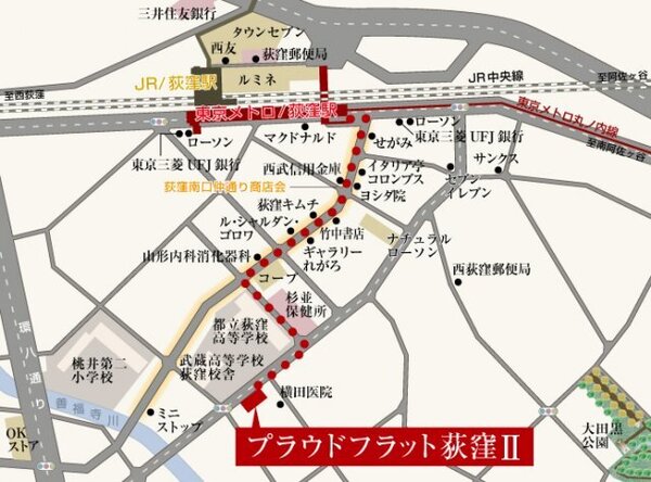 プラウドフラット荻窪Ⅱの周辺MAP