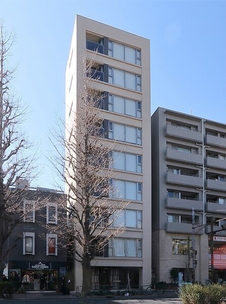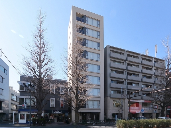 秋には黄金色のイチョウ並木が美しいプラチナ通り沿いに立地する高級賃貸マンション。外観・内装ともに白を基調としたデザインで設えており、爽やかで洗練された建物の雰囲気を演出しています。