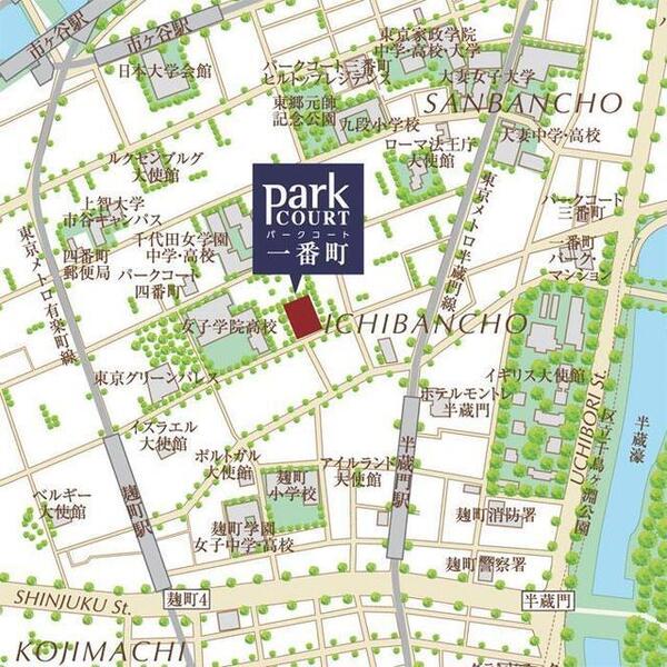 徒歩3分 有楽町線 『麹町駅』 徒歩5分 都営新宿線 『市ヶ谷駅』 徒歩11分 |
