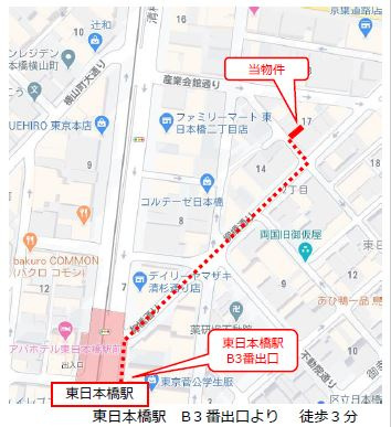 最寄駅は、都営浅草線『東日本橋駅』、総武本線『馬喰町駅』、都営浅草線『浅草橋駅』です。