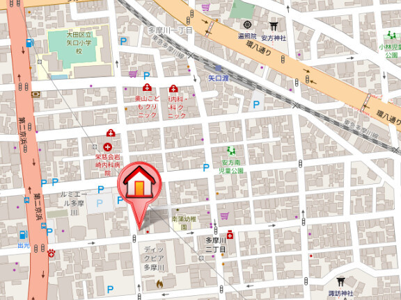 最寄駅は、東急多摩川線『矢口渡駅』、京浜東北線『蒲田駅』です。