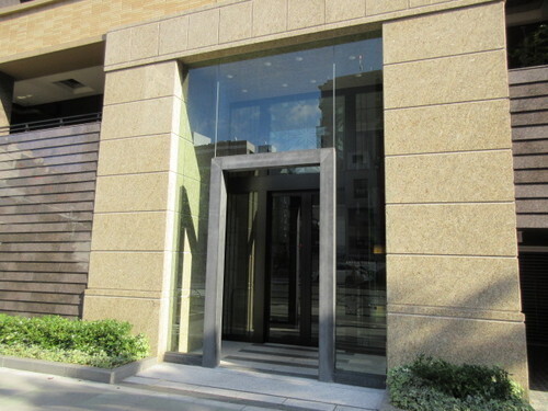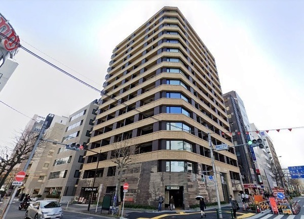 このマンションは、新大橋通りと聖ルカ通りの交差点に位置しますが、その丁度角にあたるところに「築地」駅3b出口があります。そこからメインエントランスまでは約10mです。