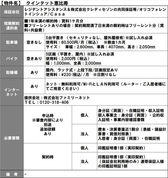 | 建物名 | クインテット恵比寿 | ||