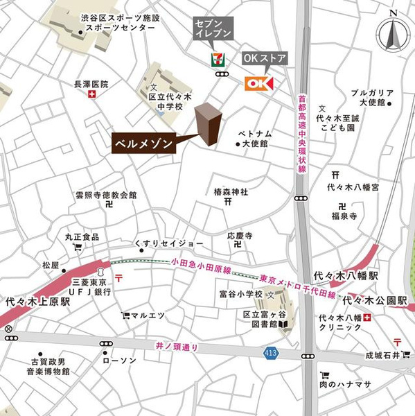 徒歩7分 小田急小田原線 『代々木八幡駅』 徒歩8分 |