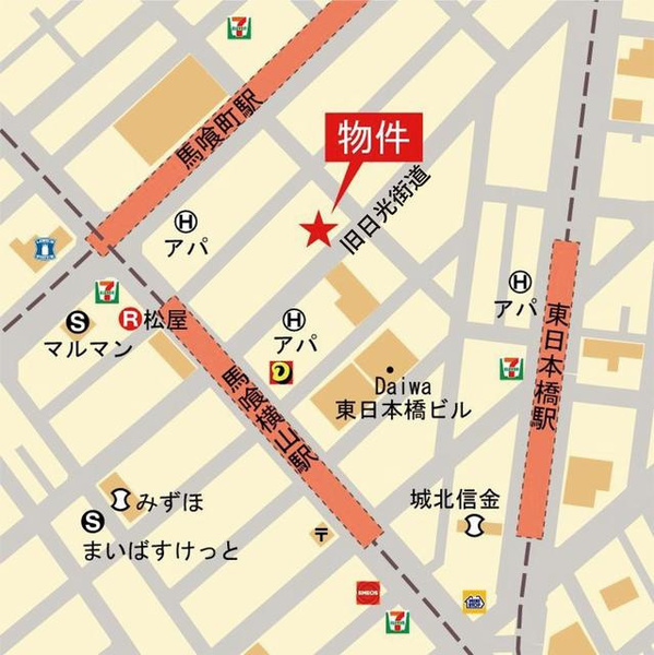徒歩2分 総武本線 『馬喰町駅』 徒歩2分 都営新宿線 『馬喰横山駅』 徒歩2分 |