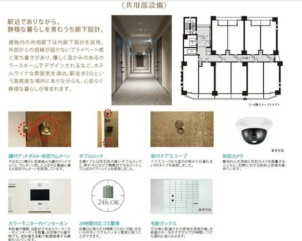 | 設備 | 防犯カメラ / オートロック / 24時間ゴミ置場利用可 / リフォーム / 保証人不要 / ノンホルムアルデヒド / 室内洗濯機置場 / バルコニー / 都市ガス / 24時間換気システム / 照明器具付き / 敷地内ごみ置き場 / ガスコンロ / コンロ2口以上 / 食器洗い乾燥機 / システムキッチン / 対面式キッチン / ディスポーザー / コンロ3口 / カウンターキッチン / バス・トイレ別 / 追焚機能浴室 / 浴室乾燥機 / 温水洗浄便座 / 洗面台 / 洗髪洗面化粧台 / シャワー / 独立洗面台 / エアコン / 床暖房 / ウォークインクロゼット / ウォークインシューズクロゼット / トランクルーム / シューズボックス / インターネット対応 / インターネット無料 / TVモニタ付インターホン / 宅配ボックス / 24時間緊急通報システム / 複層ガラス / ディンプルキー | ||
