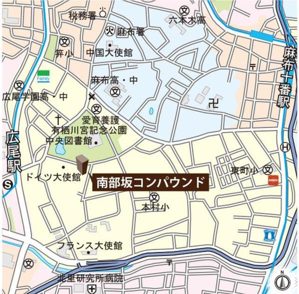 南部坂コンパウンドB棟の周辺MAP
