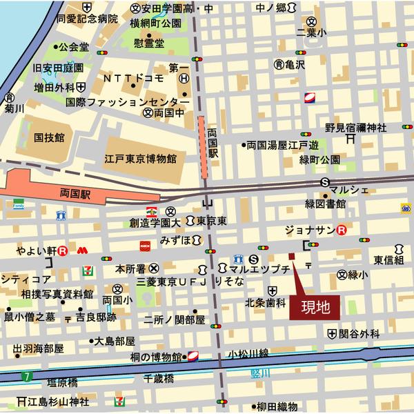 最寄駅は、都営大江戸線『両国駅』、総武線『両国駅』、都営新宿線『森下駅』です。