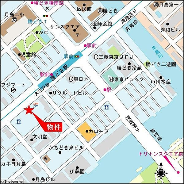 最寄駅は、都営大江戸線『勝どき駅』、都営大江戸線『月島駅』、日比谷線『築地駅』です。
