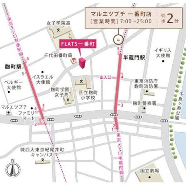 最寄駅は、半蔵門線『半蔵門駅』、中央線『四ツ谷駅』、有楽町線『麹町駅』です。