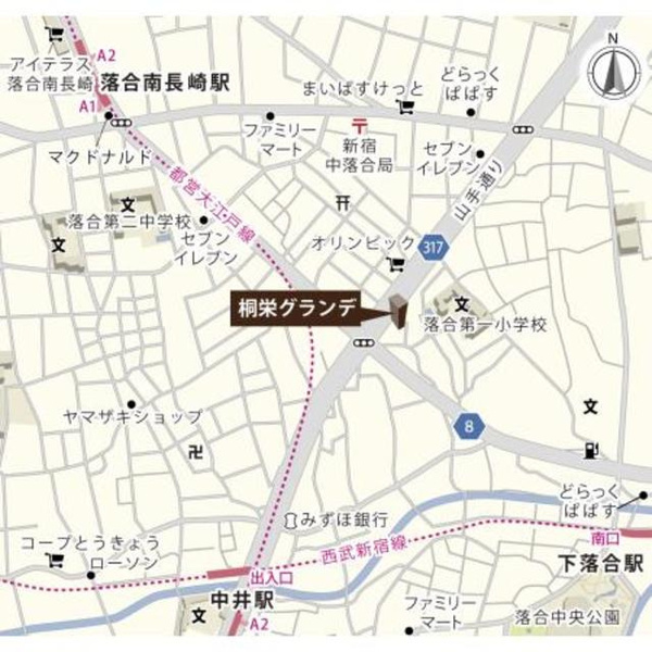最寄駅は、西武新宿線『中井駅』、西武池袋線『椎名町駅』、都営大江戸線『中井駅』です。