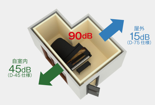 このマンションの最大の魅力は、全27戸中14戸のお部屋には防音室が付いていますので、その14戸のお部屋はグランドピアノを始め楽器の演奏が可能なことです。