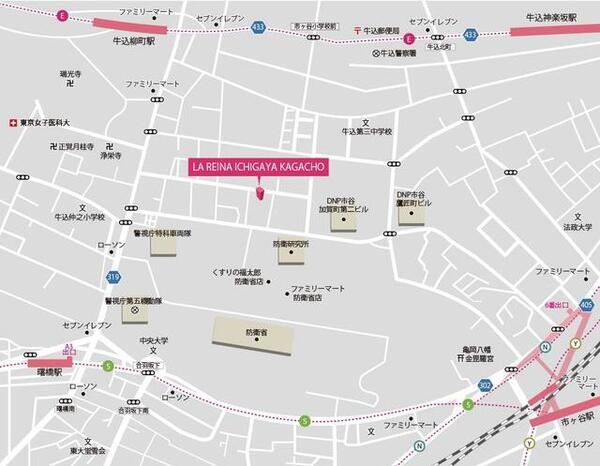 LA REINA ICHIGAYA KAGACHOの周辺MAP