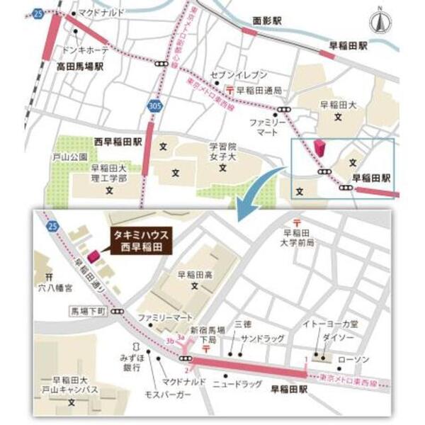 タキミハウス西早稲田の周辺MAP