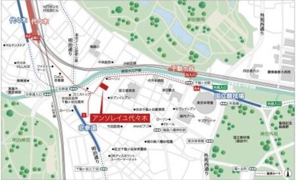 アンソレイユ代々木の周辺MAP