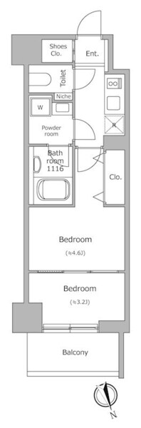 | 専有面積 | 26.1㎡ | 間取り | 2K |