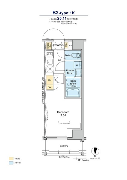 | 専有面積 | 25.11㎡ | 間取り | 1K |