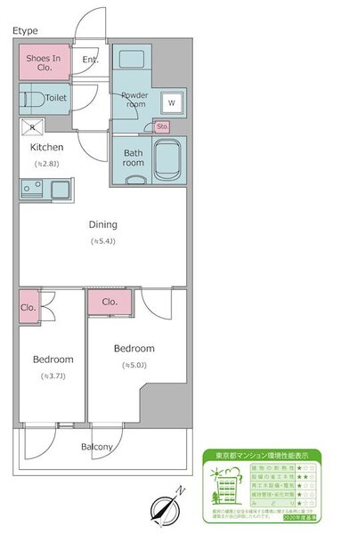 | 専有面積 | 40.17㎡ | 間取り | 2DK |