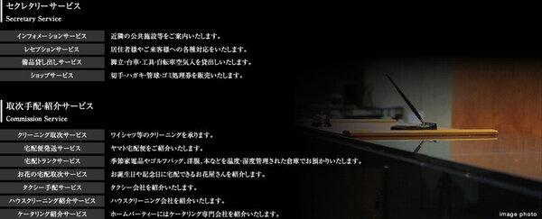 | 特徴 | エレベーター / BS / CATV / 光ファイバー / コンシェルジュサービス / 駐車場あり / ペット相談 / 楽器相談 / SOHO利用相談 / フローリング | ||