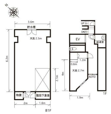 ★1階8.68㎡+B1階24.89㎡の2フロア