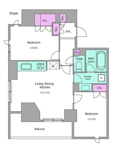 | 専有面積 | 53.51㎡ | 間取り | 2LDK |