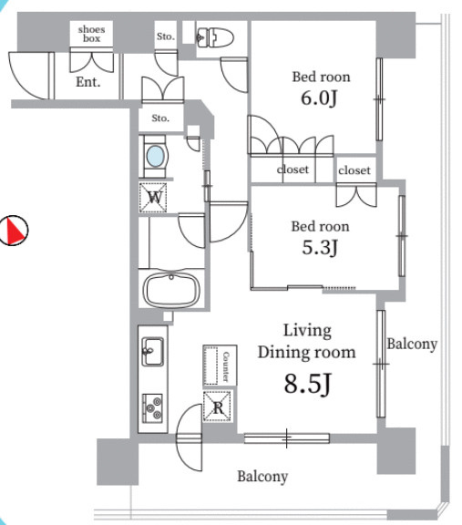 | 専有面積 | 57.05㎡ | 間取り | 2LDK |