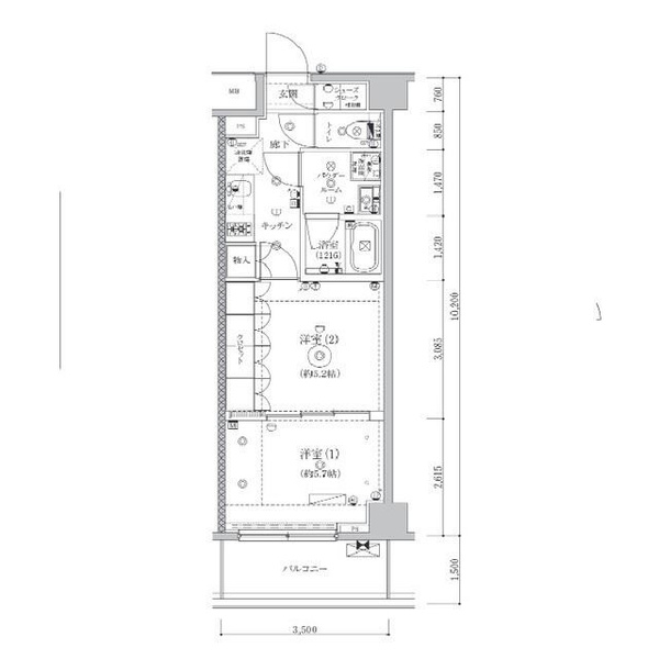 | 専有面積 | 35.7㎡ | 間取り | 2K |