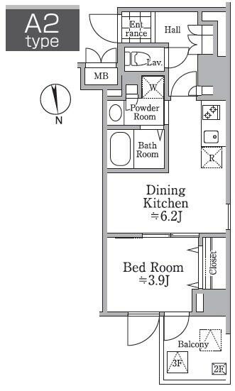 | 専有面積 | 30.73㎡ | 間取り | 2K |