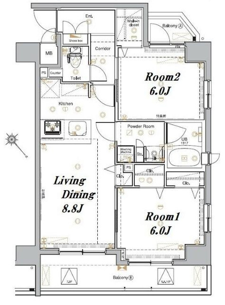| 面積 | 56㎡ | 間取り | 2LDK |